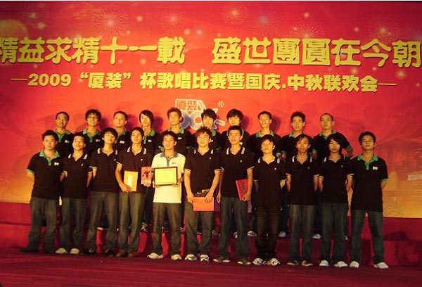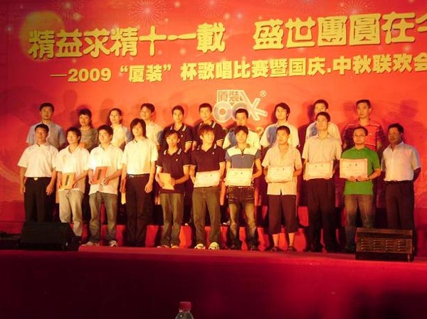 為喜迎“國(guó)慶·中秋”雙節(jié)的到來(lái),慶祝廈裝公司成立11周年,廈裝公司于2009年9月29日舉行了規(guī)模盛大的“國(guó)慶·中秋”大聯(lián)歡活動(dòng)。此次活動(dòng)包括“歌唱祖國(guó)”歌唱比賽、頒獎(jiǎng)儀式、文藝表演、中秋晚宴、中秋博餅等幾個(gè)環(huán)節(jié)。